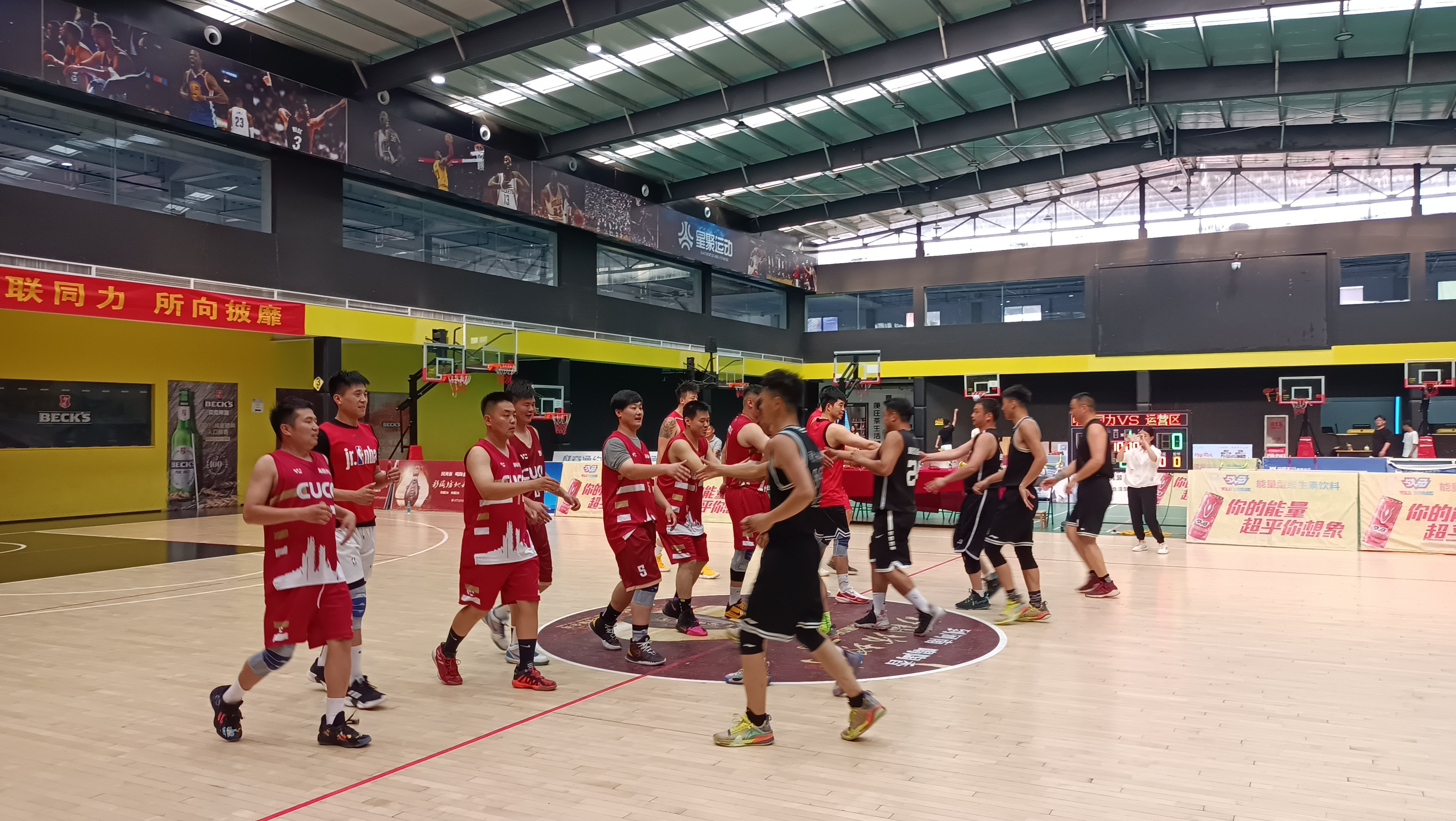 比賽開始,鄧州中聯(lián)隊(duì)通過內(nèi)外線的嫻熟配合和快攻等戰(zhàn)術(shù),很快取得大幅領(lǐng)先優(yōu)勢。面對(duì)困難,公司聯(lián)隊(duì)積極調(diào)整,加強(qiáng)后場防守,利用核心隊(duì)員實(shí)施籃下強(qiáng)攻,同時(shí)配合外圍三分進(jìn)攻,逐步穩(wěn)住了陣腳。后半場比賽,雙方進(jìn)入佳境,你來我往,打出多個(gè)精彩快攻配合,贏得觀眾一陣陣掌聲……友誼賽在激烈而又歡快的氛圍中落下帷幕,雙方隊(duì)員相互握手致意并合影留念。